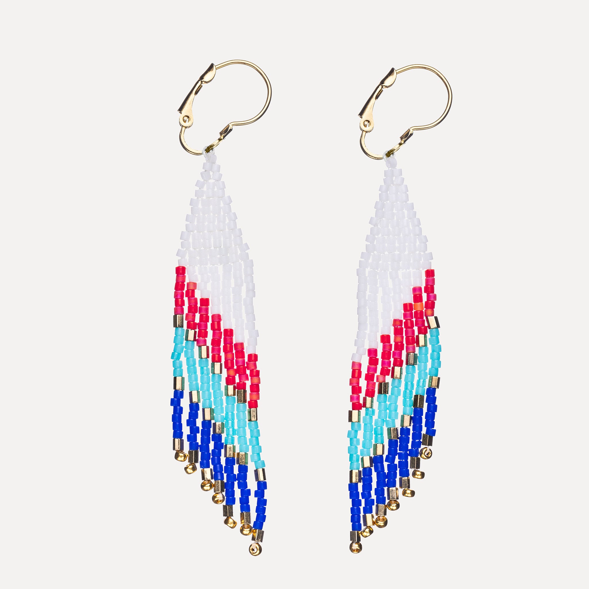 Using the finest quality materials these earrings are handmade with gold-plated seed & delica beads, and Japanese miyuki delica beads, thread onto durable fire-line, and finished with 18k gold-plated leverback hooks. Dress up or down for an elevated, everyday look.