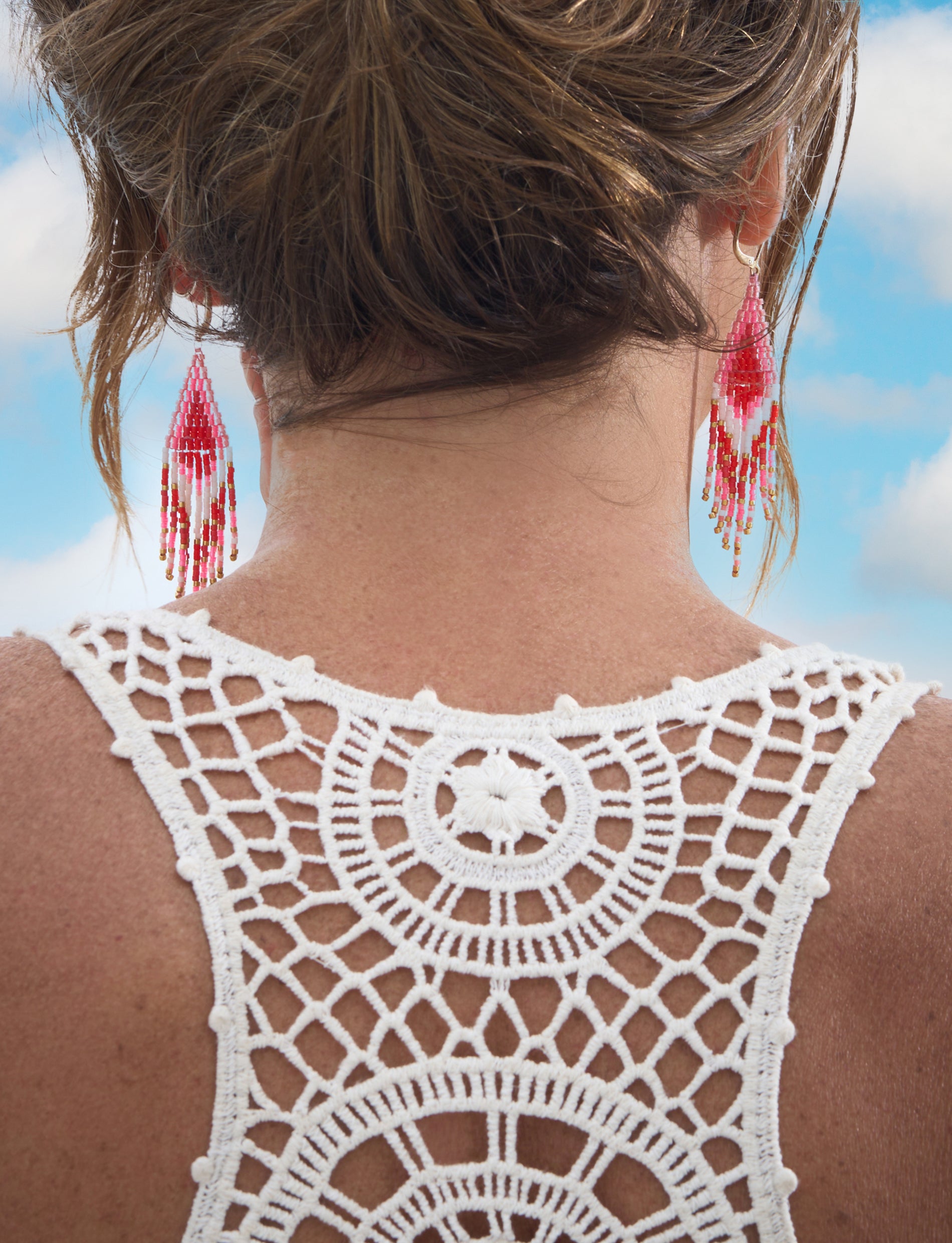 Using the finest quality materials these earrings are handmade with gold-plated seed & delica beads, and Japanese miyuki delica beads, thread onto durable fire-line, and finished with 18k gold-plated leverback hooks. Dress up or down for an elevated, everyday look.