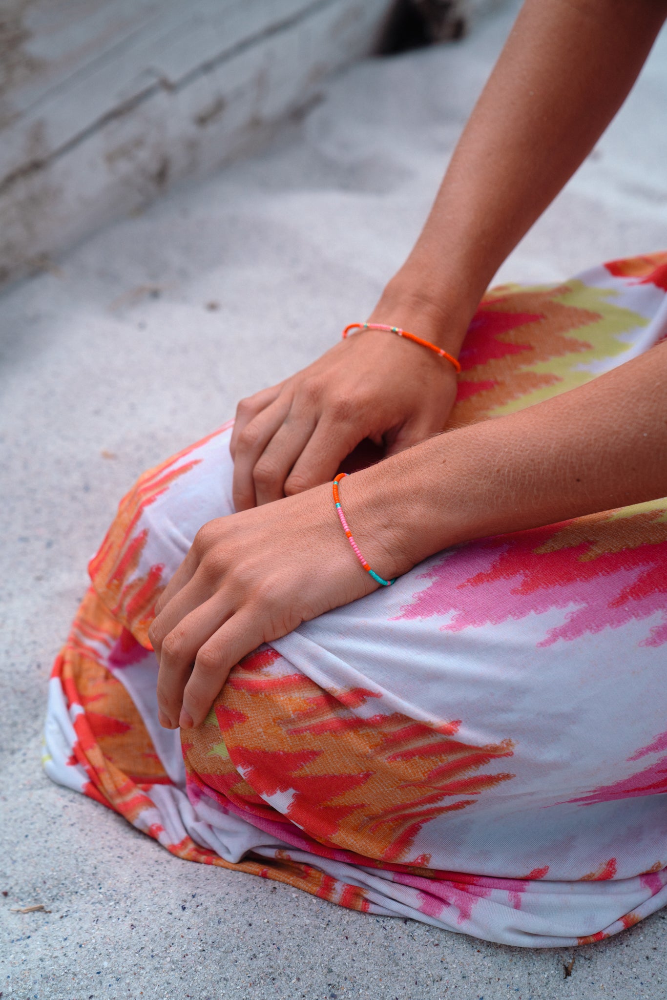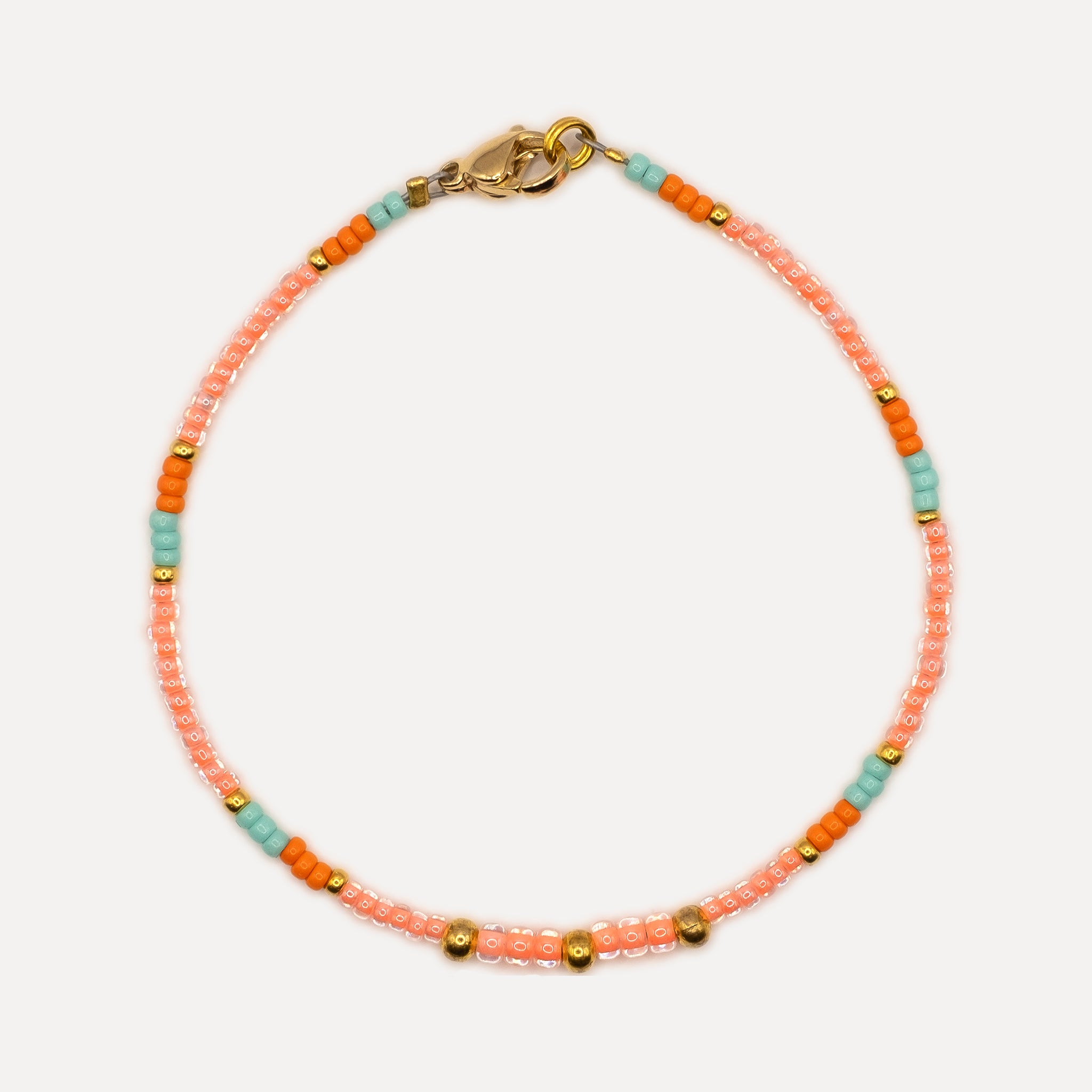 Handmade using the finest quality materials this African-inspired beaded bracelet features gold-plated seed and drop beads, and Japanese miyuki glass seed beads, thread onto durable soft-flex and finished with an 18k gold-filled clasp. Designed as 1 of a set of 3 bracelets, & as part of a necklace set, or Mix & Match with other colourways in our collection. Layer with your existing jewellery for an elevated, everyday look.
