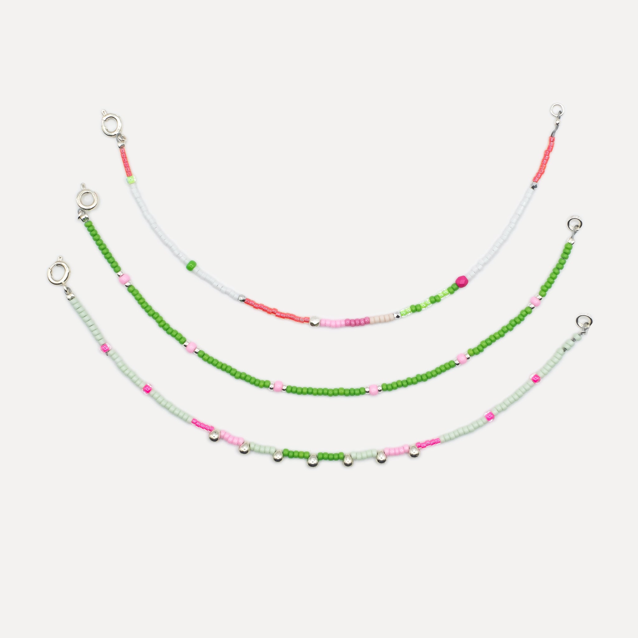 Handmade using the finest quality materials this African-inspired beaded bracelet features silver-plated beads, Czech seed beads, & Japanese miyuki glass delica, thread onto durable soft-flex, finished with a silver-plated clasp. Designed as 1 of the set of 3, or Mix & Match with other colourways in our collection.