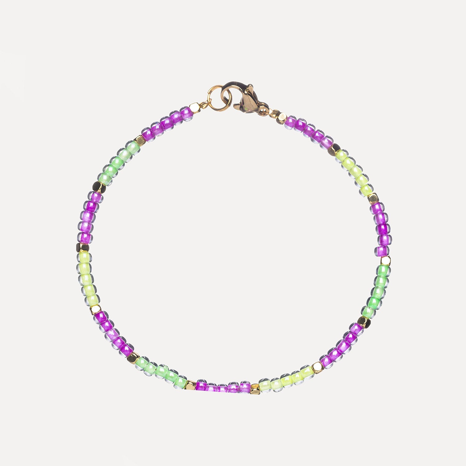 Using the finest quality materials this bracelet is handmade with Japanese miyuki glass, & Czech seed beads, thread onto durable soft-flex, finished with an 18k gold-filled clasp. Designed as 1 of a Set of 3 from our Island range, or Mix & Match with other colourways in our collections.