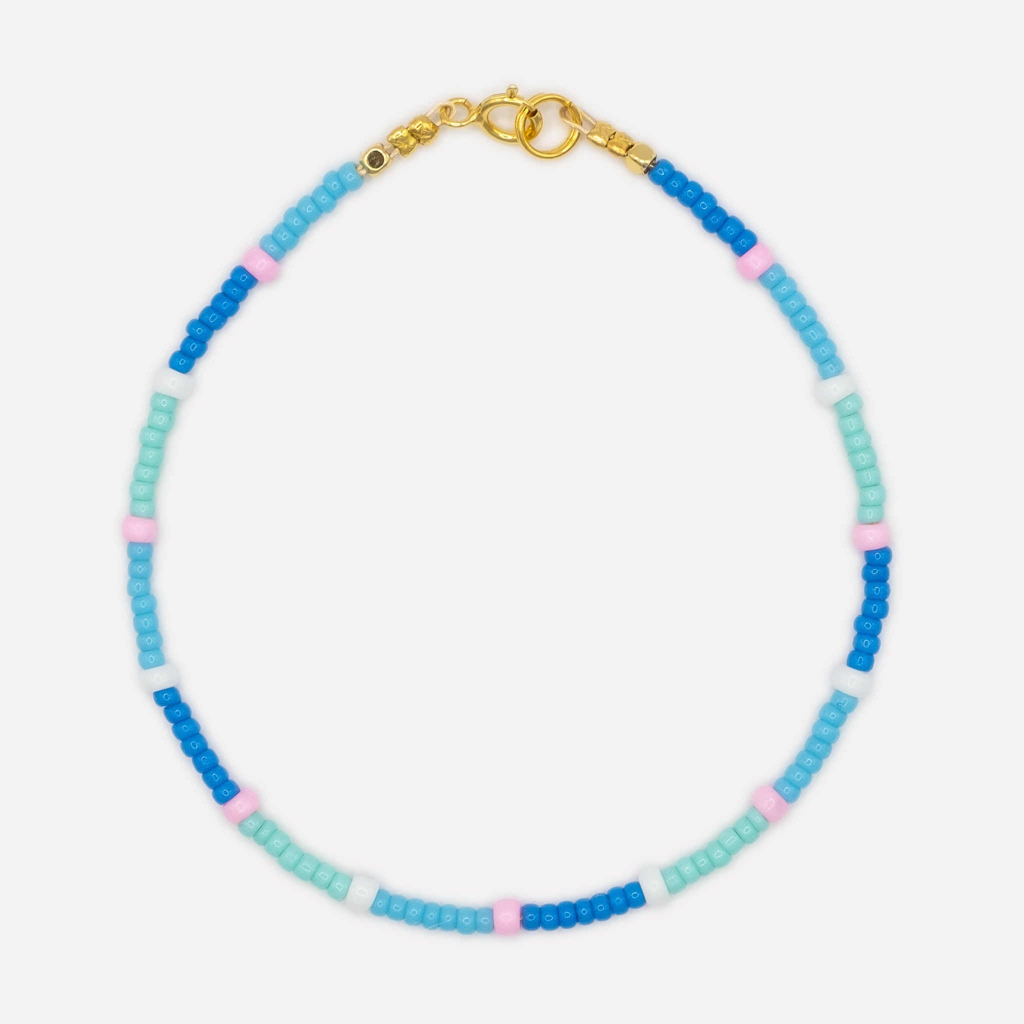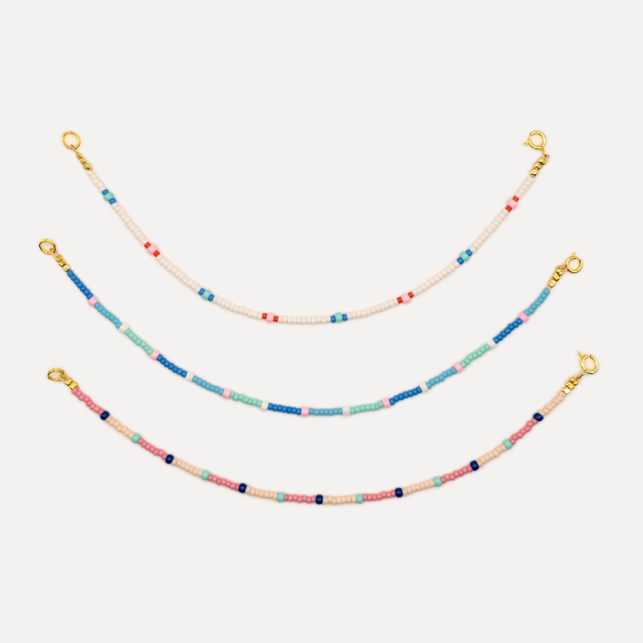 Using the finest quality materials this bracelet is handmade with Japanese miyuki glass seed beads, thread onto durable soft-flex, finished with an 18k gold-filled clasp. This bracelet is one of a Set of 3 from our Carnival 2 range, or Mix & Match with other colourways in our collection.