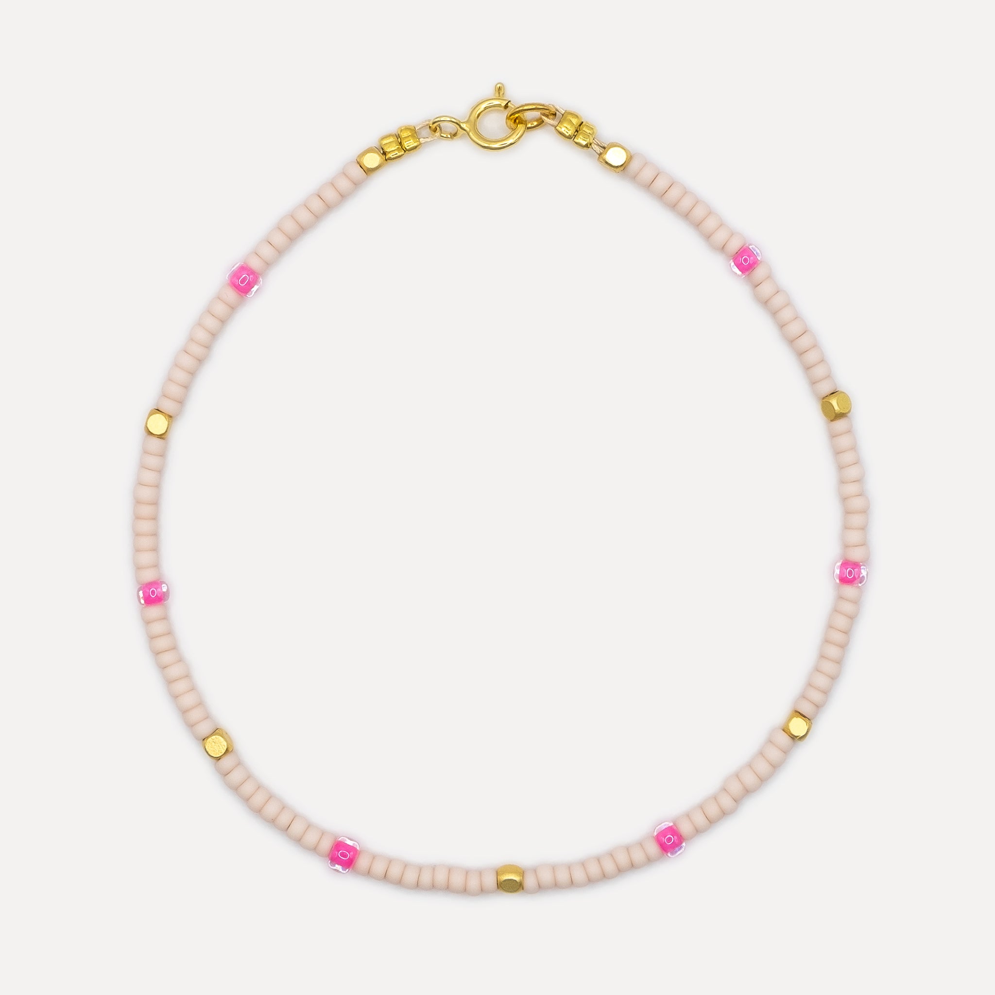 Using the finest quality materials this bracelet is handmade with gold-plated brushed cube beads, and Japanese miyuki glass seed beads, thread onto durable soft-flex, and finished with an 18k gold-filled clasp. This bracelet is designed as 1 of a Set of 3, or Mix & Match with bracelets in other colourways in our collection. Dress up or down for an elevated, everyday look.