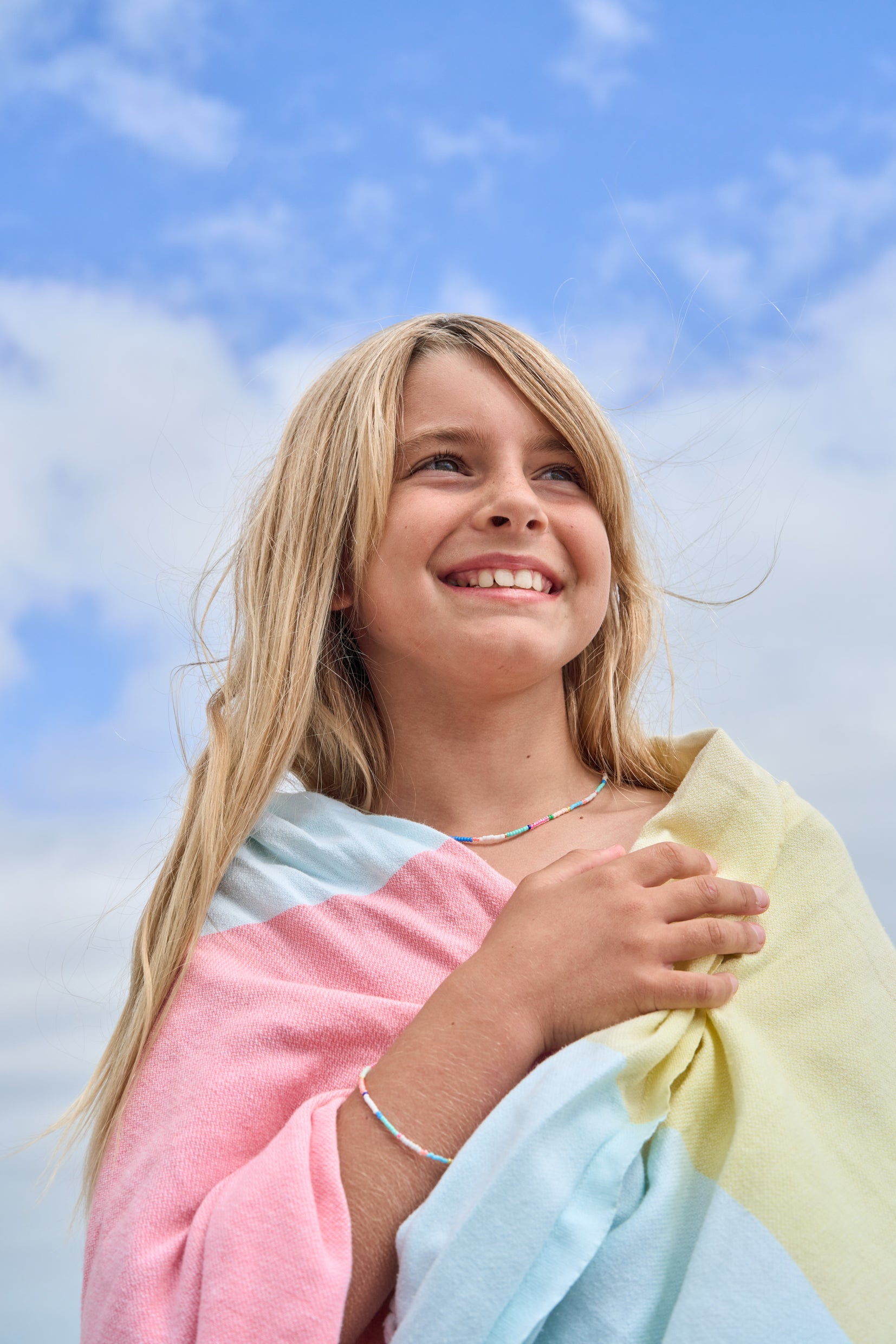Using the finest quality materials this bracelet is handmade with Japanese miyuki glass seed beads, & Czech seed beads, thread onto durable soft-flex, finished with a silver-plated clasp. This bracelet is one of a Set of 3, & part of a necklace set from our Island range, or Mix & Match with other bracelets from our collections.