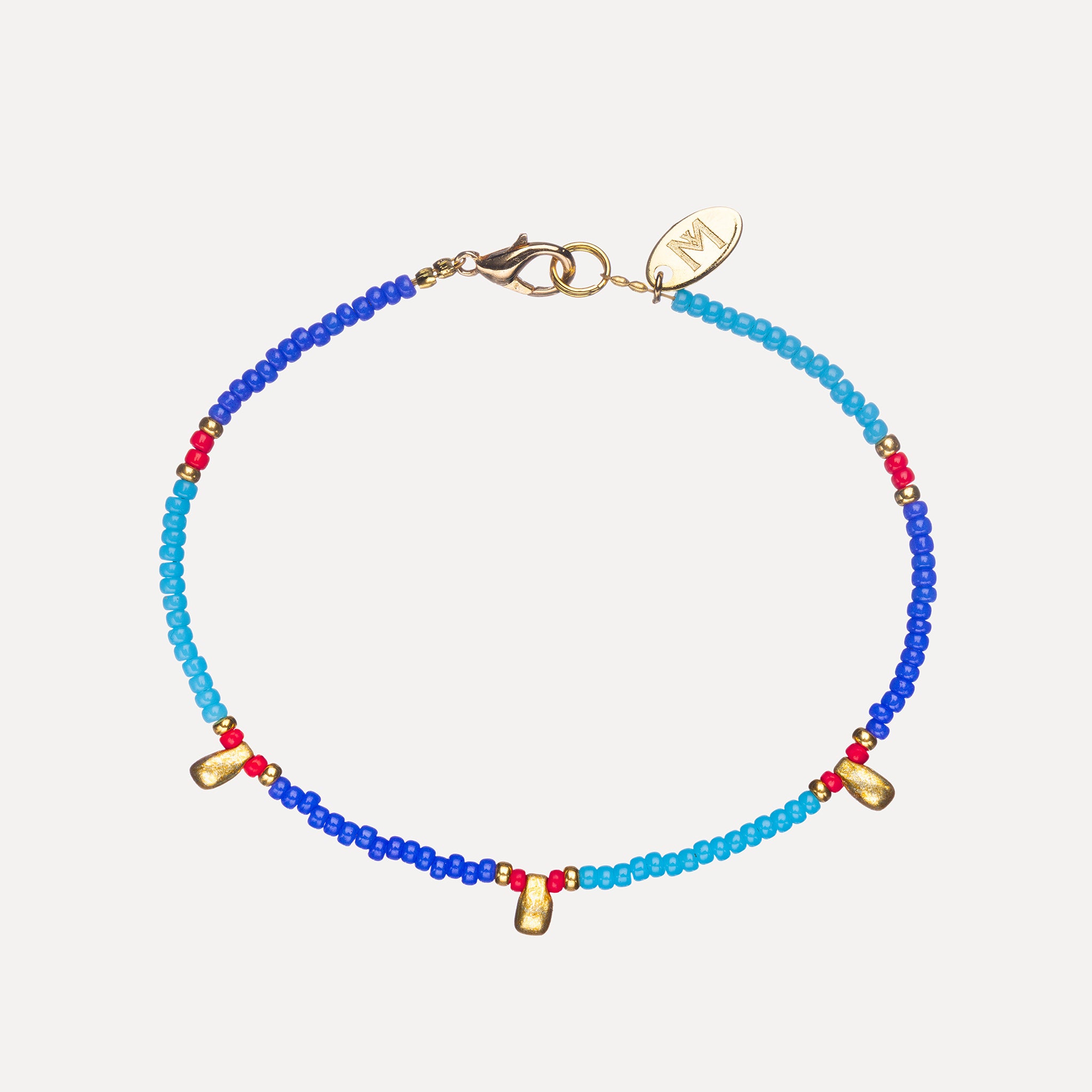 Using the finest quality materials this bracelet is handmade with Japanese miyuki glass seed beads & gold-plated drop beads, thread onto durable soft-flex, finished with an 18k gold-filled clasp. This bracelet is designed as part of a necklace set, or Mix & Match with other colourways in our collection. Dress up or down for an elevated, everyday look.