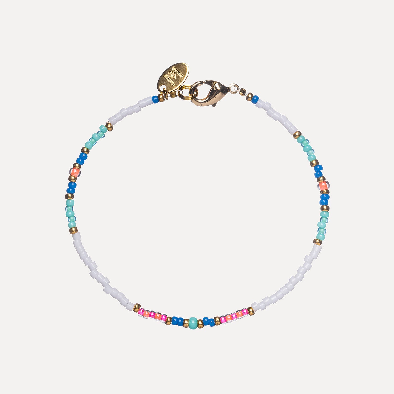 Using the finest quality materials this bracelet is handmade with Japanese miyuki glass seed beads, Czech seed, and gold seed beads, thread onto durable soft-flex and finished with an 18k gold-filled clasp. Layer with existing jewels or Mix & Match with other colourways in our collections. Dress up or down for an elevated, everyday look.