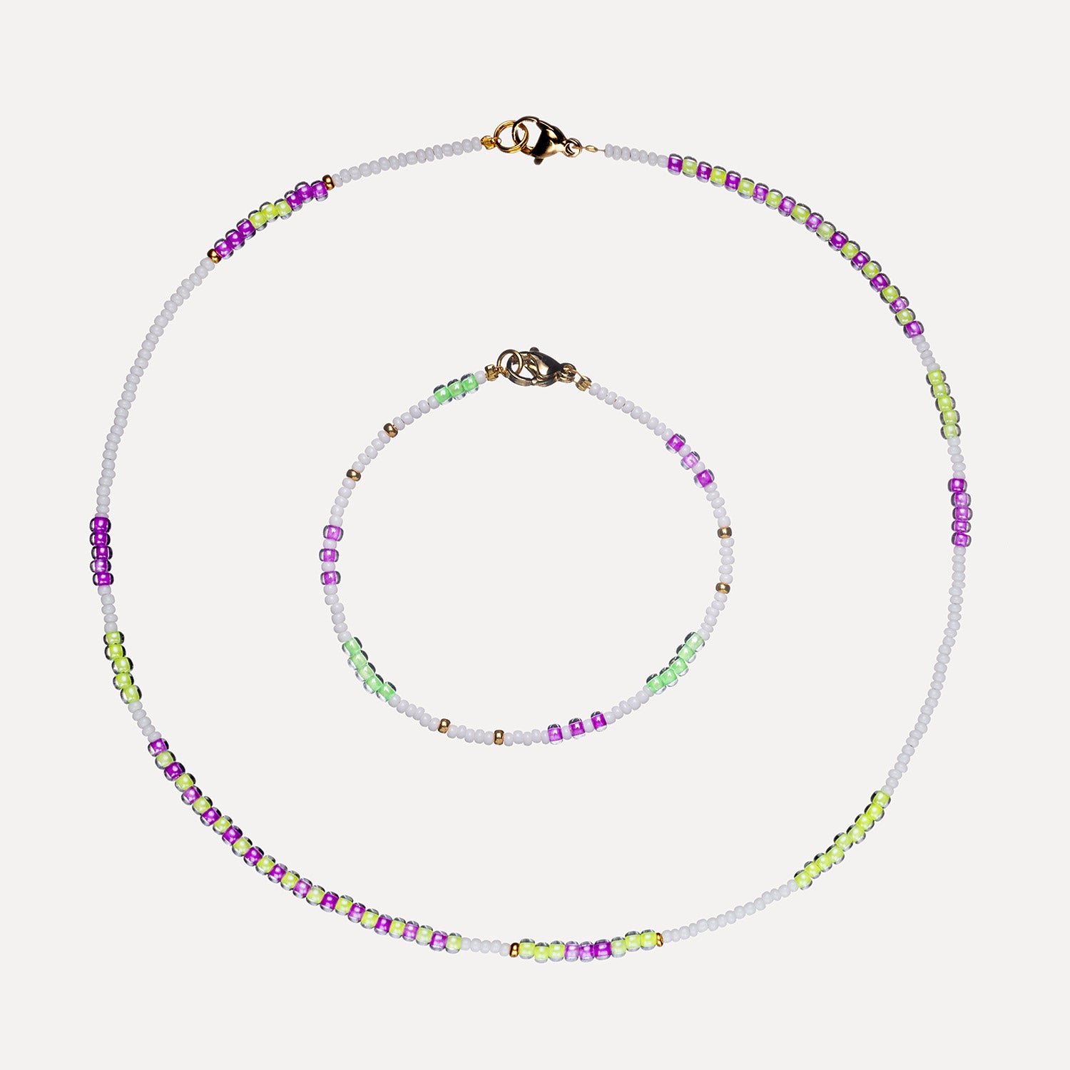 Using the finest quality materials this bracelet is handmade with Japanese miyuki glass seed beads, glass and gold drop beads, thread onto durable soft-flex and finished with an 18k gold-filled clasp. This bracelet is one of a Set of 3, & designed as part of a necklace set from our Island range, or Mix & Match with other colourways in our collections. Dress up or down for an elevated, everyday look.