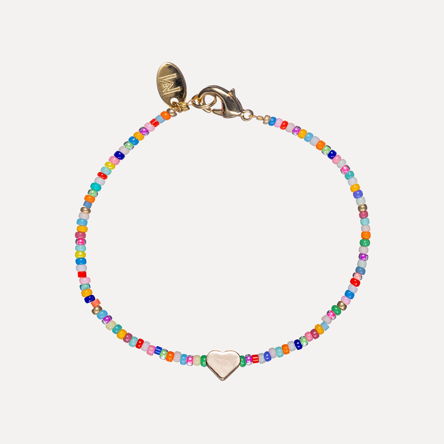 Using the finest quality materials this anklet is handmade with a 14K gold-plated heart, Japanese miyuki gold-plated seed beads, and Czech glass seed & delica beads, thread onto durable soft-flex and finished with an 18k gold-filled clasp. This piece is designed to be layered with other pieces from our collection, and with your existing jewellery. Dress up or down for an elevated, everyday look.
