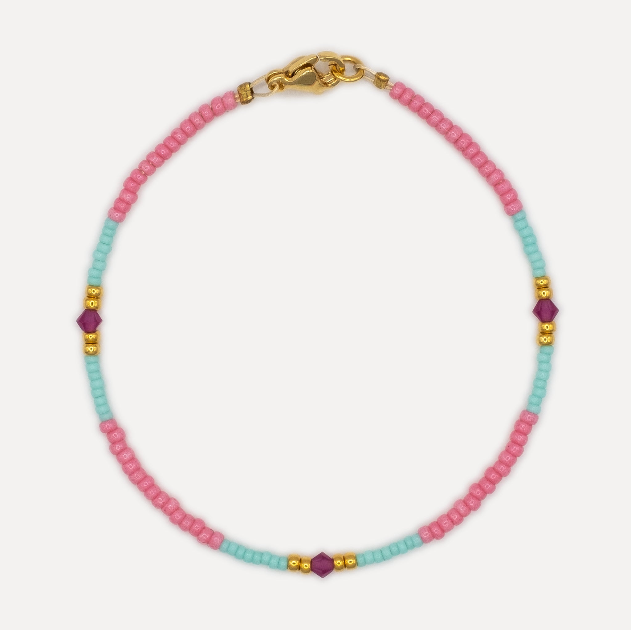 Using the finest quality materials this bracelet is handmade with gold-plated seed beads, Czech preciosa gems, & Japanese miyuki glass seed beads, thread onto durable soft-flex, finished with an 18k gold-filled clasp. Mix & Match with other colourways in our collection. Dress up or down for an elevated, everyday look.