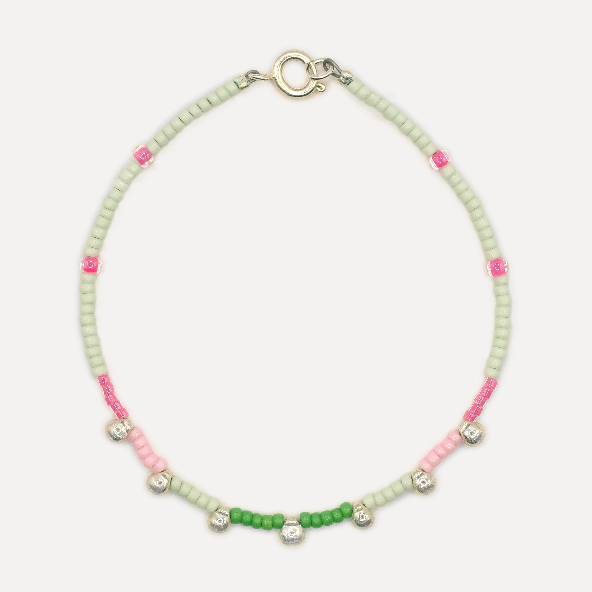 Handmade using the finest quality materials this African-inspired beaded bracelet features silver-plated drop beads, Czech seed beads, and Japanese miyuki glass delica, thread onto durable soft-flex and finished with a silver-plated clasp. Designed as 1 of the set of 3, or Mix & Match with other colourways in our collection. Layer with your existing jewellery for an elevated, everyday look.
