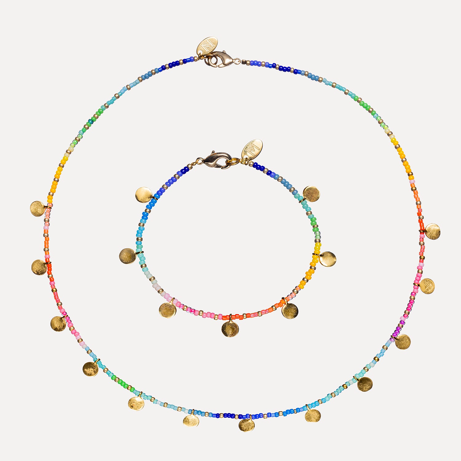 Using the finest quality materials this bracelet is handmade with gold-plated charms, Japanese miyuki gold-plated seed beads, & Czech glass seed & delica beads, thread onto durable soft-flex, finished with an 18k gold-filled clasp. This bracelet is designed to be worn as part of a necklace set, or layered with other pieces from our collection. Dress up or down for an elevated, everyday look.