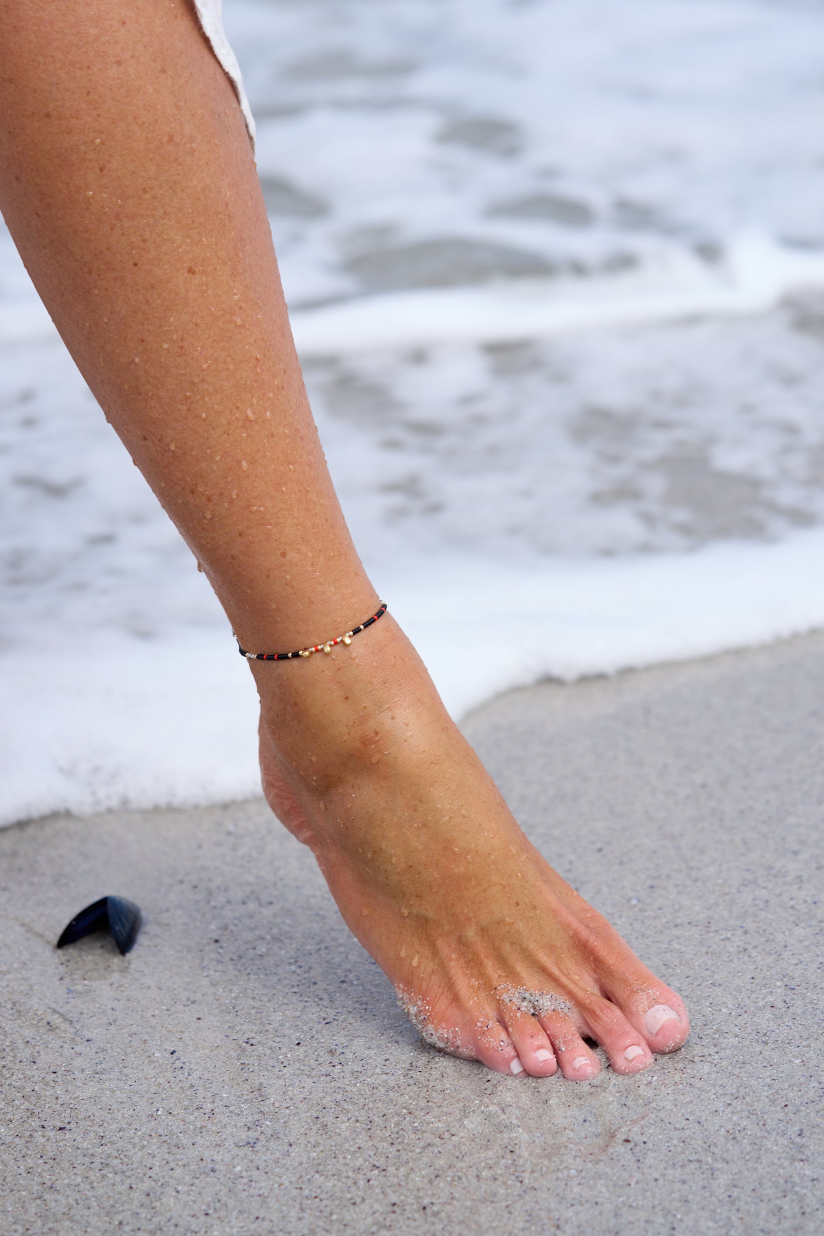 Using the finest quality materials this anklet is handmade with Japanese miyuki gold-plated seed beads, and Czech glass seed & delica beads, thread onto durable soft-flex and finished with an 18k gold-filled clasp. This anklet is designed to be layered with other pieces from our collection, and with your existing jewellery. Dress up or down for an elevated, everyday look.