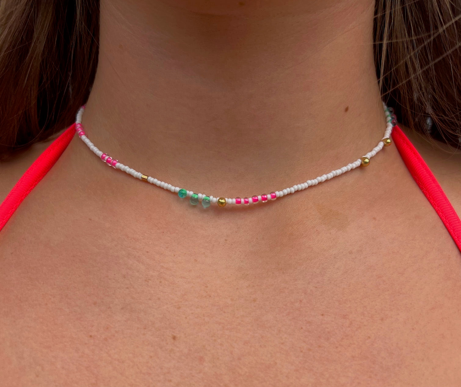 Using the finest quality materials this necklace is handmade with Japanese miyuki glass & drop beads, and Czech seed beads, thread onto durable soft-flex and finished with an 18k gold-filled clasp. This Lamu Island Necklace is designed to be layered with other pieces from our collection, and with your existing jewellery. Dress up or down for an elevated, everyday look.