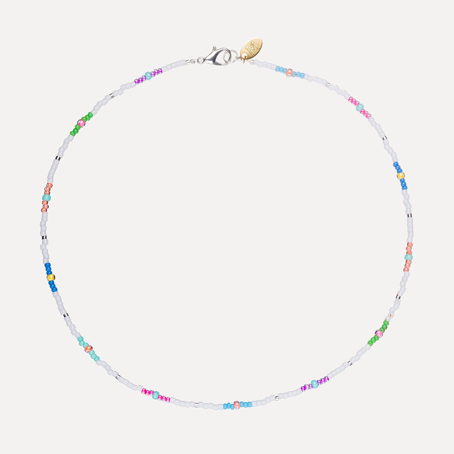 Using the finest quality materials this necklace is handmade with Japanese miyuki glass, silver delica, and Czech seed beads, thread onto durable soft-flex and finished with a silver plated clasp. This Island Necklace is designed to be layered with other pieces from our collection, and with your existing jewellery. Dress up or down for an elevated, everyday look.