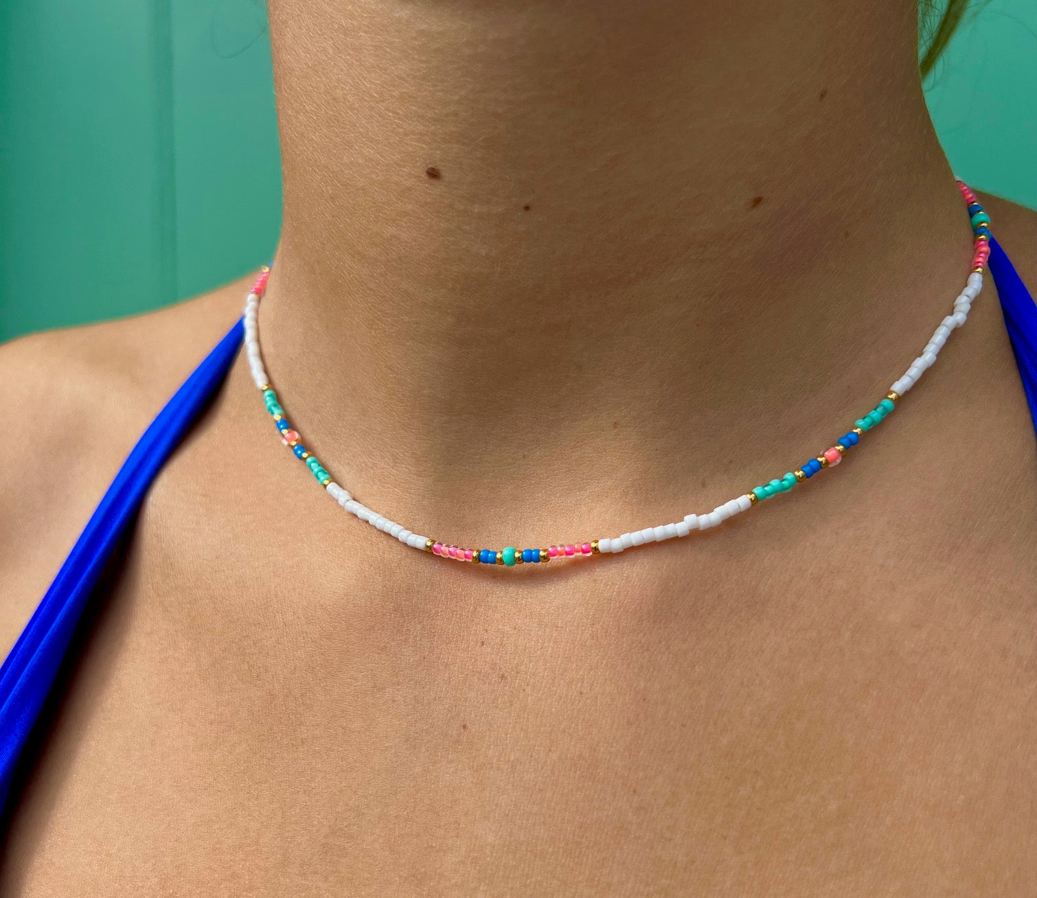 Using the finest quality materials this necklace is handmade with Japanese gold-plated miyuki seed beads, and Czech glass beads, thread onto durable soft-flex and finished with an 18k gold-filled clasp. The Island Gold Seed necklace is designed to be layered with other pieces from our collection, and with your existing jewellery. Dress up or down for an elevated, everyday look.