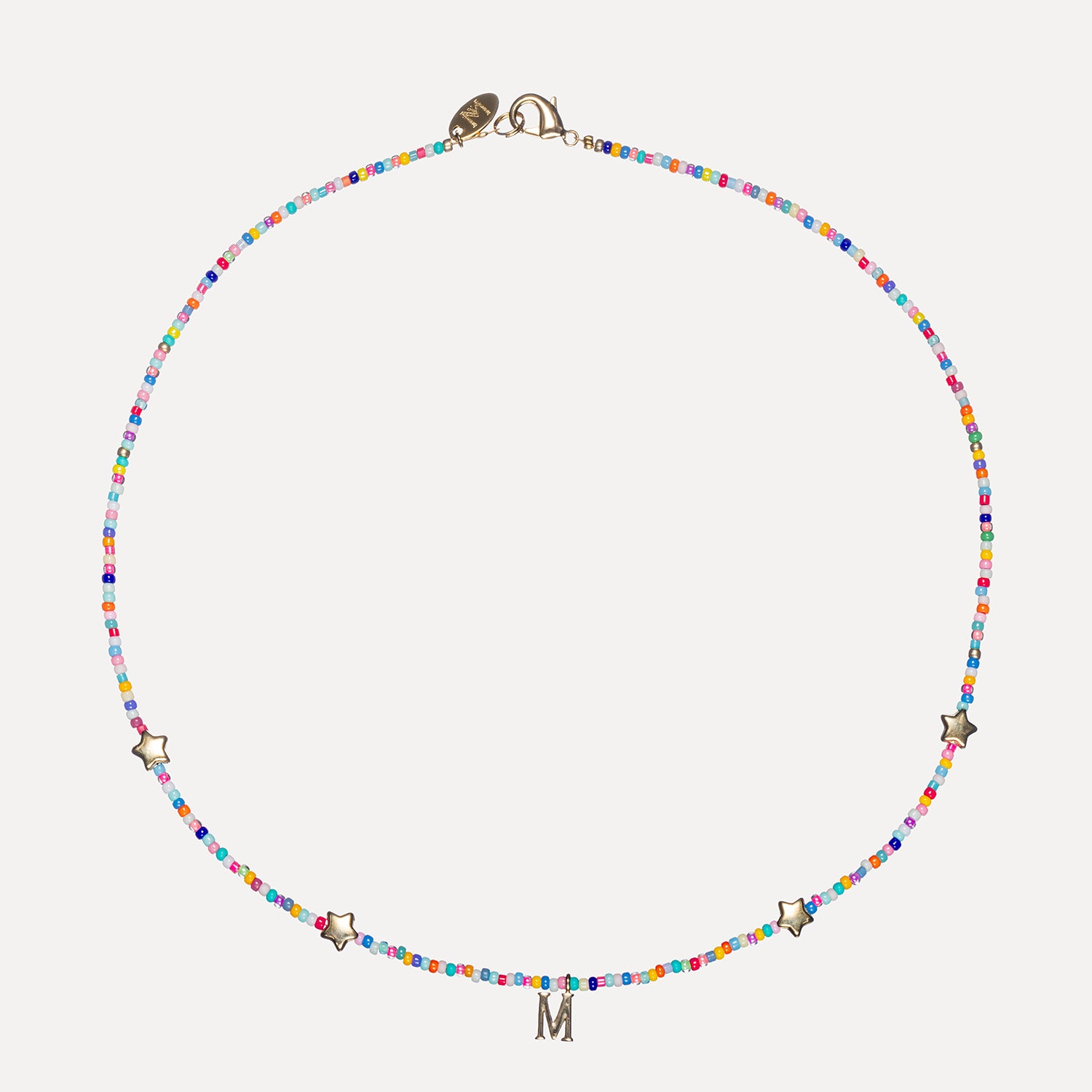 & a gold filled initial (of your choice), Japanese miyuki gold-plated seed beads, and Czech glass seed & delica beads, thread onto durable soft-flex and finished with a gold-filled clasp. This piece is designed as part of a set, and to be layered with other pieces from our collection, and with your existing jewellery. Dress up or down for an elevated, everyday look.