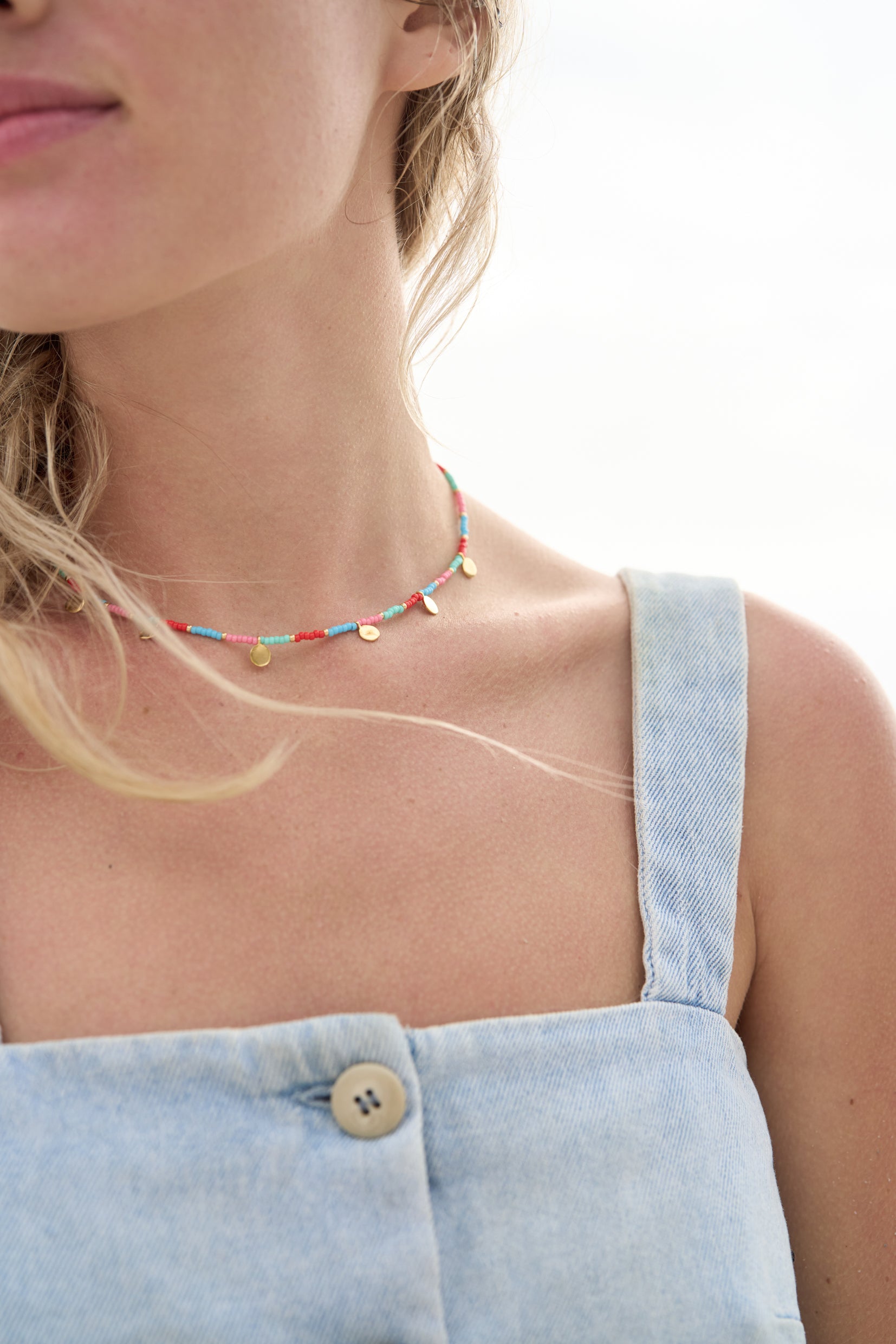 Using the finest quality materials this necklace is handmade with gold-plated charms, Czech seed beads, and Japanese miyuki gold-plated beads, thread onto durable soft-flex and finished with an 18k gold-plated clasp. The Lamu Stripe Charm Necklace is designed to be layered with other pieces from our collection, and with your existing jewellery. Dress up or down for an elevated, everyday look.