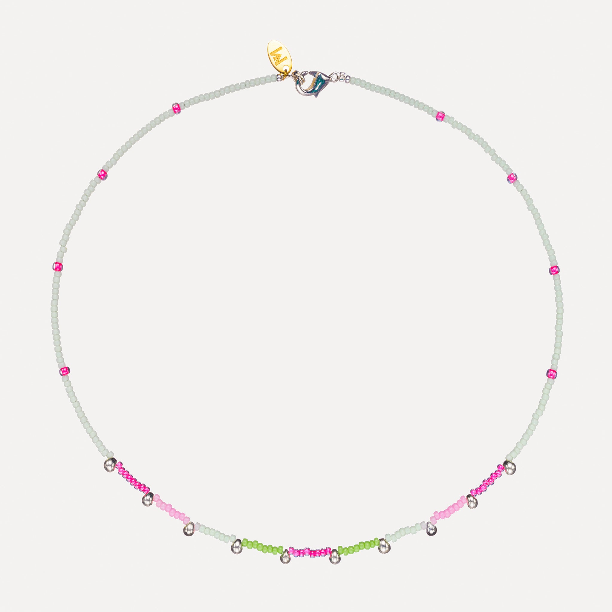 Using the finest quality materials this necklace is handmade with silver-plated drop beads, and Czech glass seed beads, thread onto durable soft-flex and finished with a silver-plated clasp. This necklace is designed to be layered with other pieces from our collection, and with your existing jewellery, Dress up or down for an elevated, everyday look.