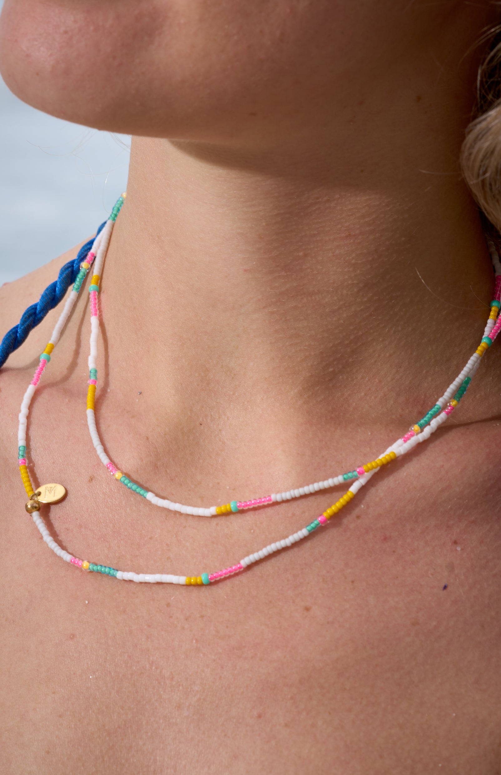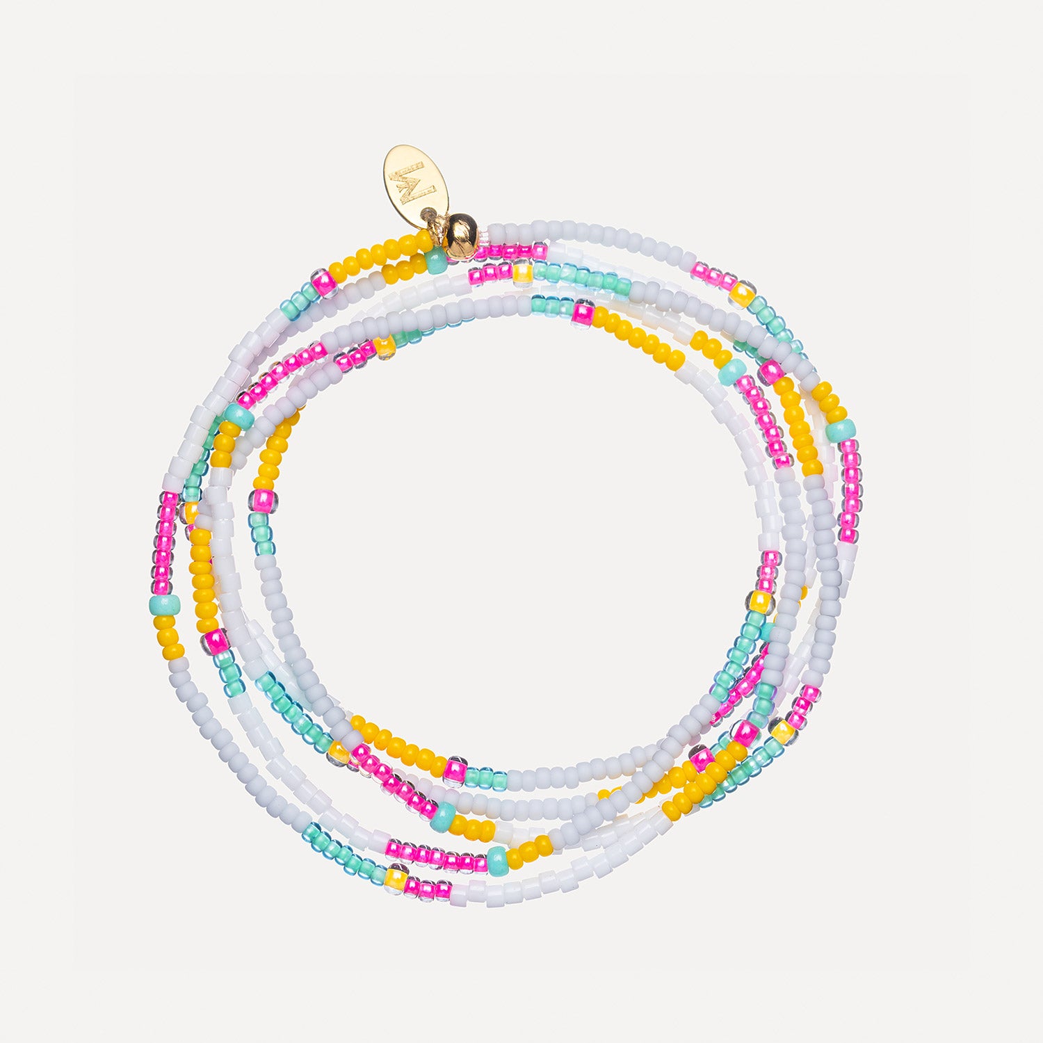 Our signature creation, the Malindi Twist, is a versatile design that can be styled as both a necklace and bracelet - twist it over the wrist five times or over the neck twice. An everyday, easy-to-wear piece. The Island Twist is thread with, Japanese miyuki glass, and Czech seed beads. Designed to be layered with other pieces from our collection, or with your existing jewellery. Dress up or down.