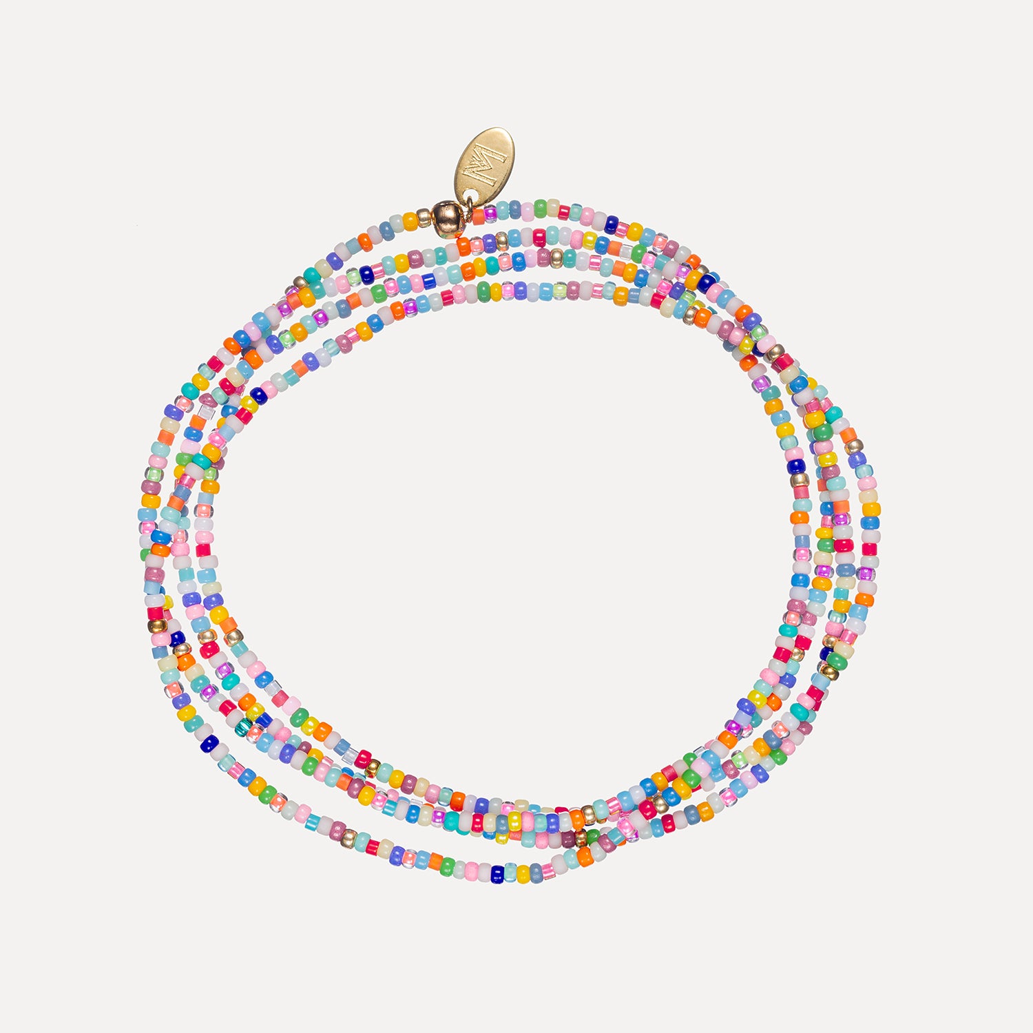 Our signature creation, the Malindi Twist, is a versatile design that can be styled as both a necklace and bracelet - twist it over the wrist five times or over the neck twice. An everyday, easy-to-wear piece. The LOVE Twist is thread with, gold-plated Japanese miyuki beads, and Czech seed beads. Designed to be layered with other pieces from our collection, or with your existing jewellery. Dress up or down.