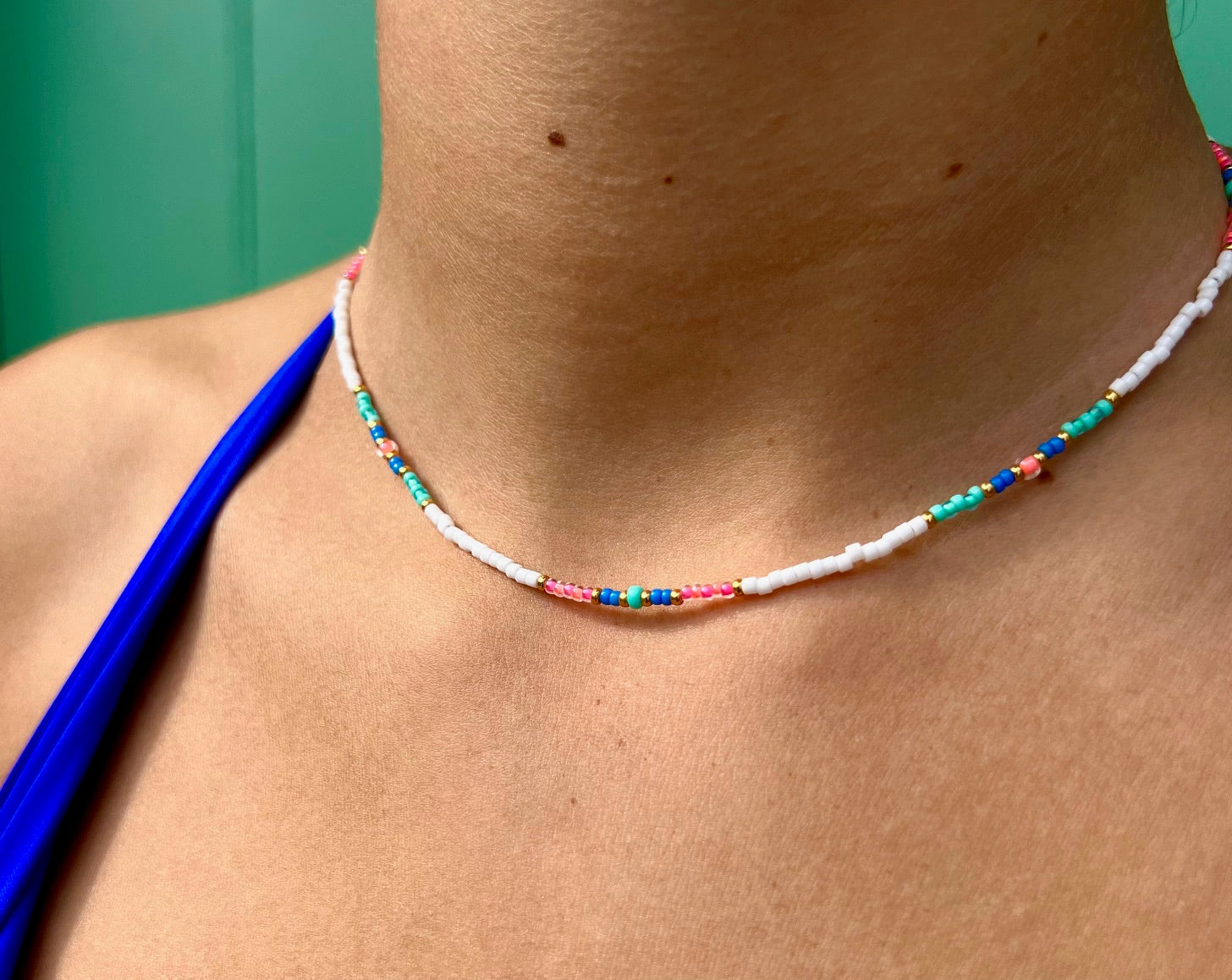 Using the finest quality materials this necklace & bracelet set is handmade with Japanese gold-plated miyuki seed, and Czech glass beads, thread onto durable soft-flex and finished with an 18k gold-filled clasp. This set is designed to be layered with other pieces from our collection, and with your existing jewellery. Dress up or down for an elevated, everyday look.