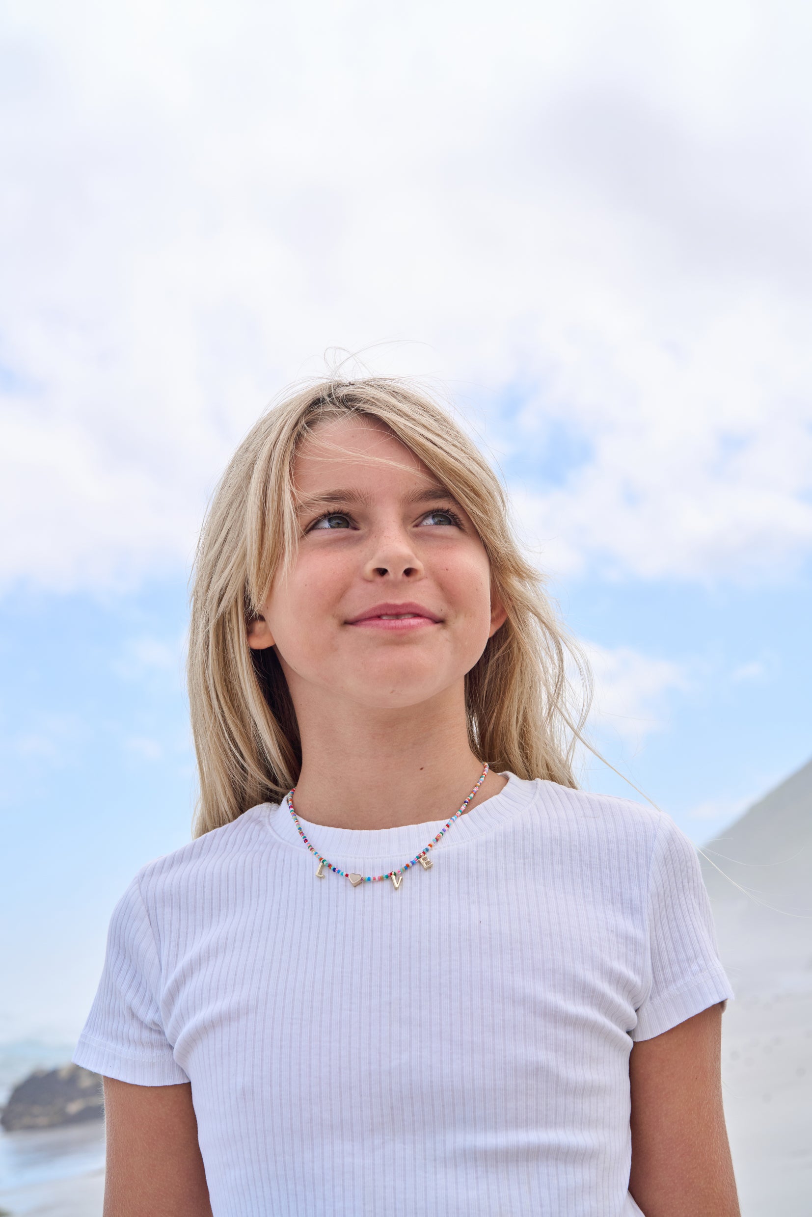 Using the finest quality materials this necklace & bracelet set is handmade with 14K gold-plated letters & heart, Japanese miyuki gold-plated seed beads, and Czech glass seed & delica beads, thread onto durable soft-flex and finished with an 18k gold-filled clasp. This piece is designed to be layered with other pieces from our collection, and with your existing jewellery. Dress up or down for an elevated, everyday look.