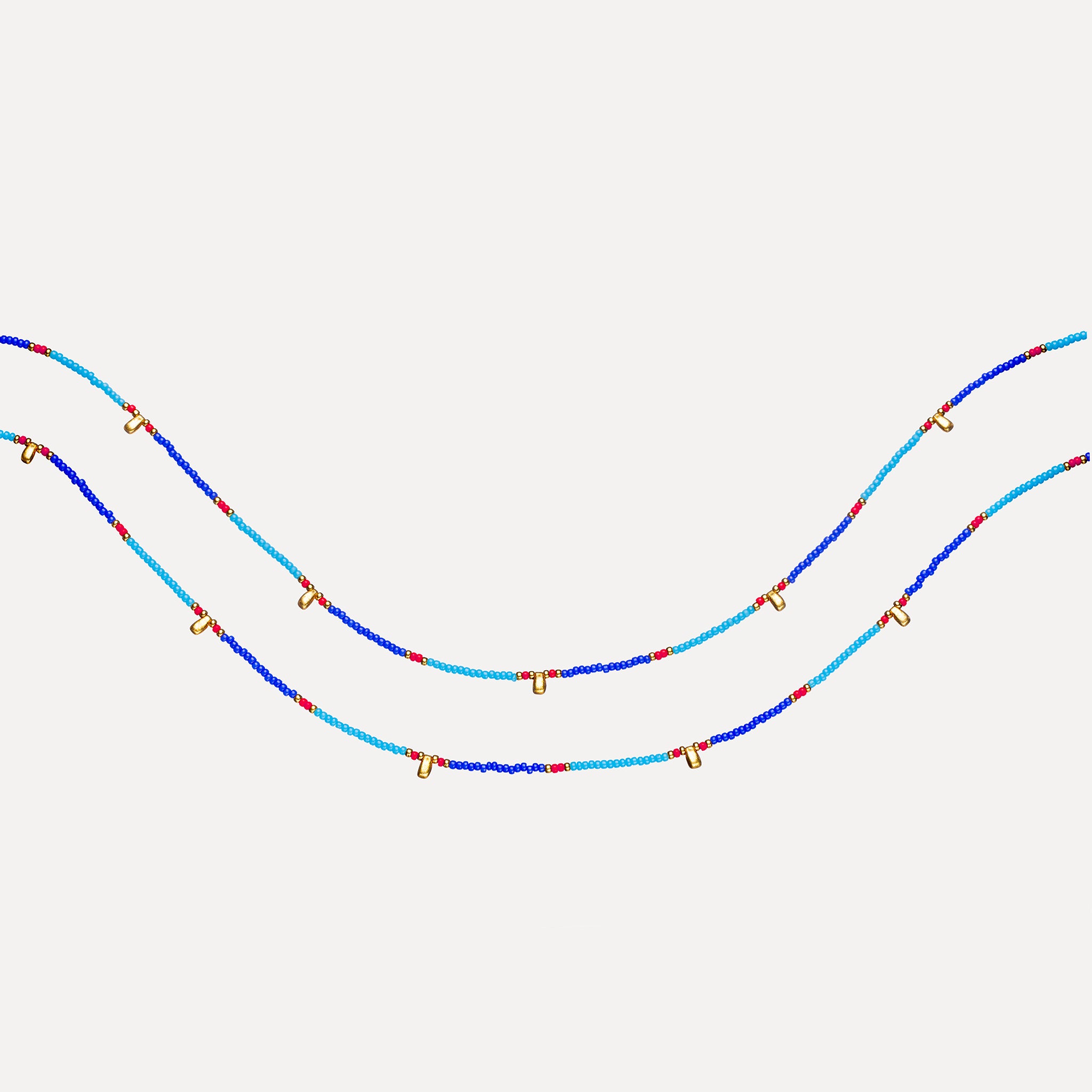 Using the finest quality materials this item is handmade with gold-plated seed and drop beads, and Japanese miyuki glass seed beads, thread onto durable soft-flex and finished with an 18k gold-plated clasp. A perfect statement piece for the Summer. Dress up or down for an elevated, everyday look.