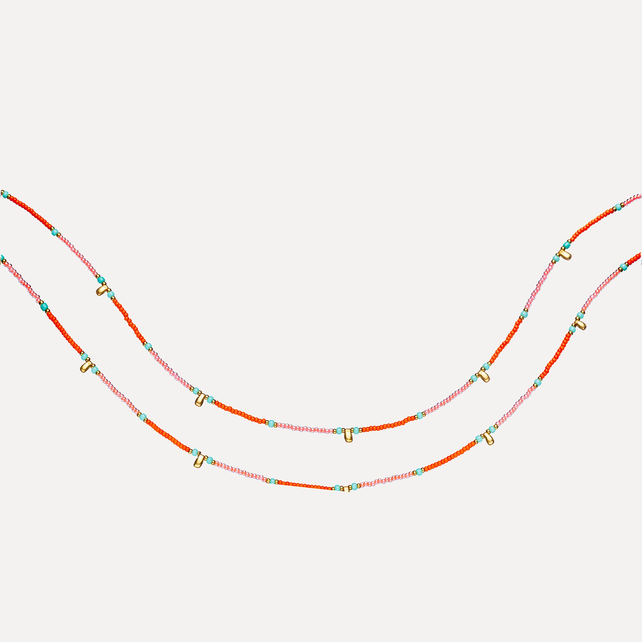 Using the finest quality materials this piece is hand-crafted with gold-plated drop beads, Czech seed beads, and Japanese miyuki glass seed beads, thread onto durable soft-flex and finished with an 18k gold-plated clasp. A perfect statement for the Summer. Dress up or down for an elevated, everyday look.