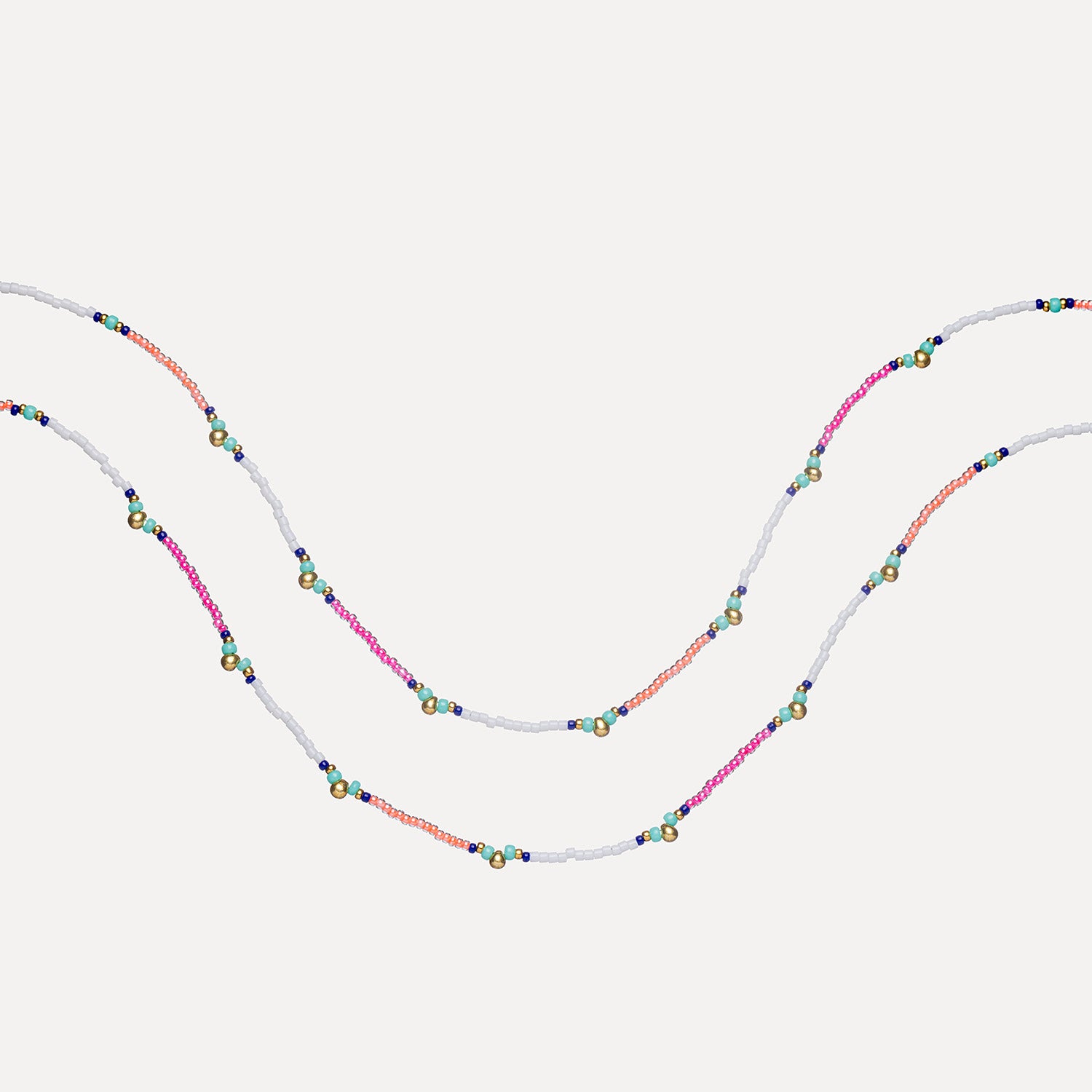 Using the finest quality materials this piece is handmade with gold drop beads, Japanese miyuki glass, and Czech seed beads, thread onto durable soft-flex and finished with an 18k gold-filled clasp. A perfect statement for the Summer. Dress up or down for an elevated, everyday look.