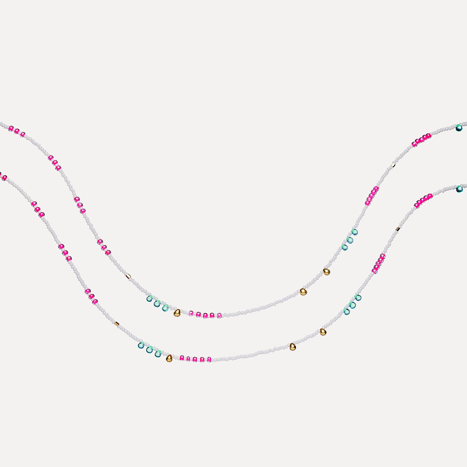 Using the finest quality materials this piece is handmade with gold drop beads, Japanese miyuki glass, and Czech seed beads, thread onto durable soft-flex and finished with an 18k gold-filled clasp. A perfect statement for the Summer. Dress up or down for an elevated, everyday look.